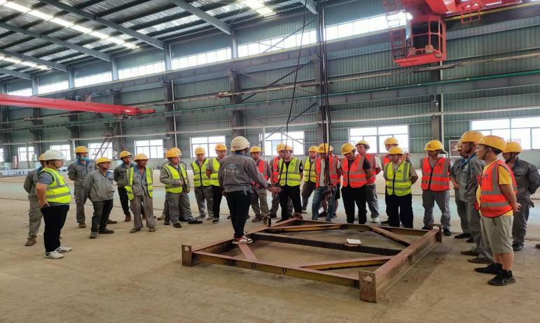 為了提高員工安全生產意識,最大程度降低安全生產風險,提高員工安全操作應知應會能力,增強安全風險意識,創造安全舒適的生產環境。公司生產部和物管部于915日至19日在一車間進行桁車實操考核培訓。